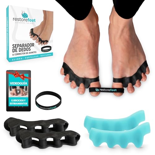 RestoreFeet Separadores de Dedos de los Pies, (2 pares) + Banda Anti-Juanetes para Enderezar los dedos Torcidos o Superpuestos – Separador dedos pie, corrector de dedos, 0% BPA
