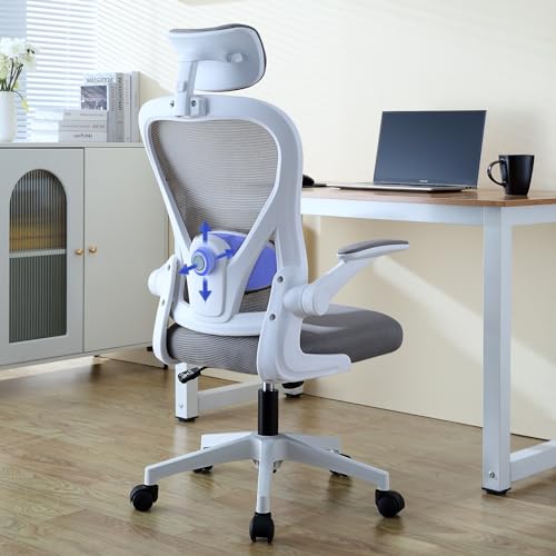 SOSINYA Silla De Oficina Ergonómica,Silla De Escritorio con Reposacabezas Ajustable, Plegable,Soporte Lumbar Ajustable,Silla Giratoria De Malla 360°,hasta 120Kg (519-WG)