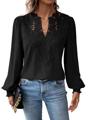 – TUUHAW camiseta de manga larga para mujer con escote en V y encaje a ganchillo,esta camiseta de manga larga destaca por su excelente confección y su agradable sensación al tacto. Está fabricada con un material suave y ligero, ideal para el uso diario.