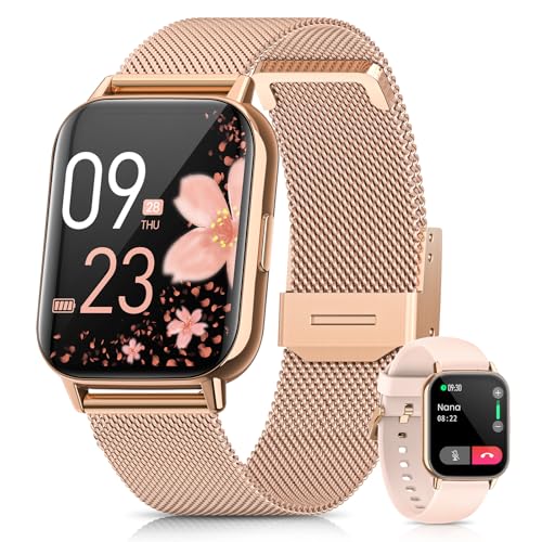【Caja de Regalo】Reloj Inteligente Mujer, 1.83″ HD Smartwatch con Llamadas/Función Femenina/Pulsómetro/SpO2/Monitor de Sueño Calorías 113+ Modos Deportivos Podómetro WhatsApp IP68 Android iOS Oro Rosa