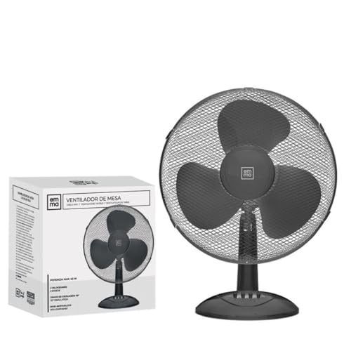 Ventilador de pie EMMA – Ultra Silencioso – Envio 24h – 45 W – Bajo Consumo – Alta Potencia en 3 velocidades – Altura Modulable – 3 Aspas Duales – Pedestal – Ligero y Resistente (Negro, Mesa)